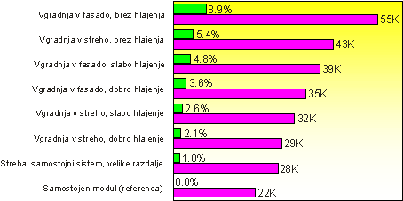 Slika 2: Temperatura modula nad temperaturo okolice in relativne energijske izgube PV generatorjev.