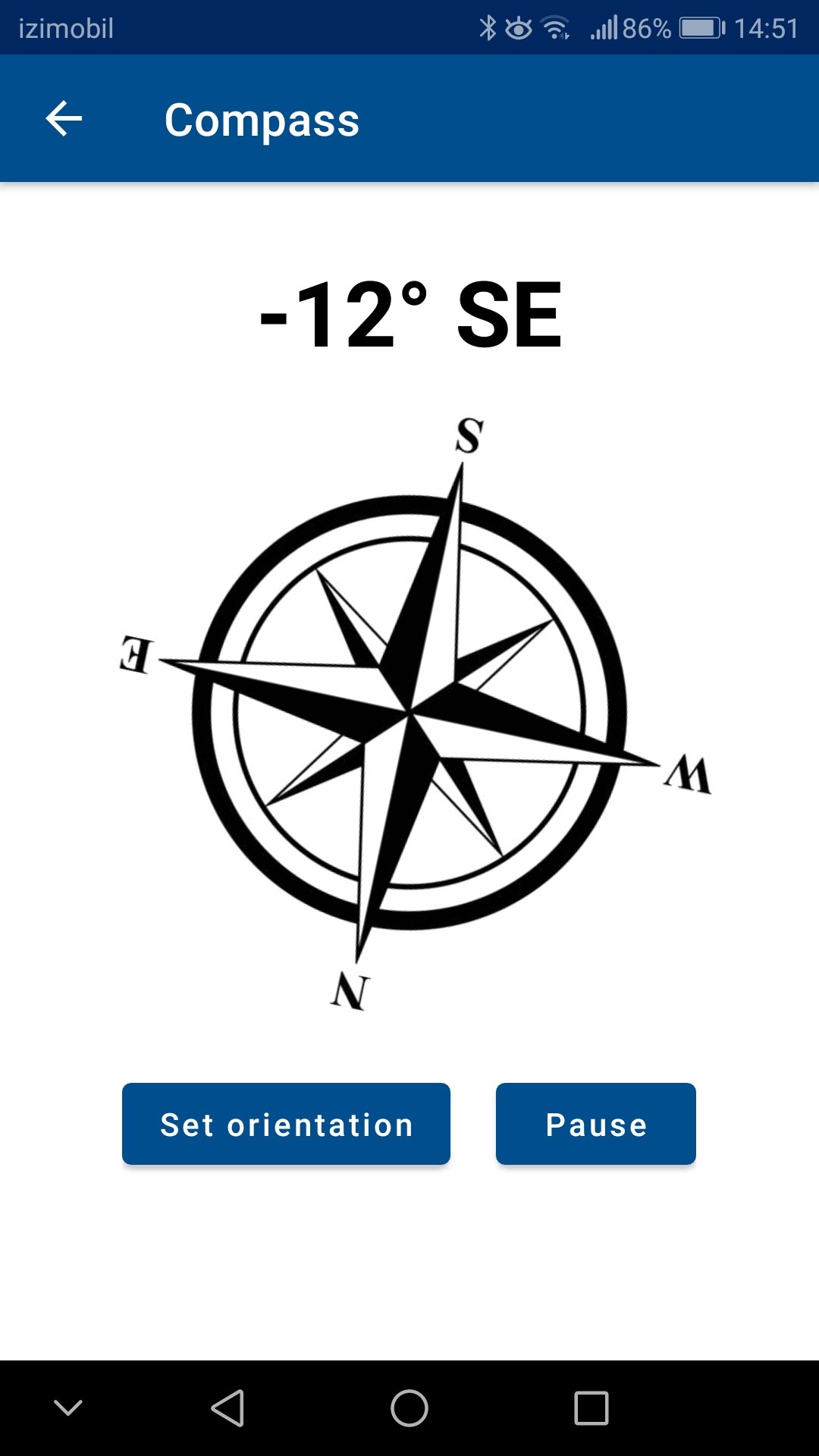 Določitev orientacije: Zaženete kompas, obrnete telefon v smer v katero bodo obrnjeni moduli in določite orientacijo.