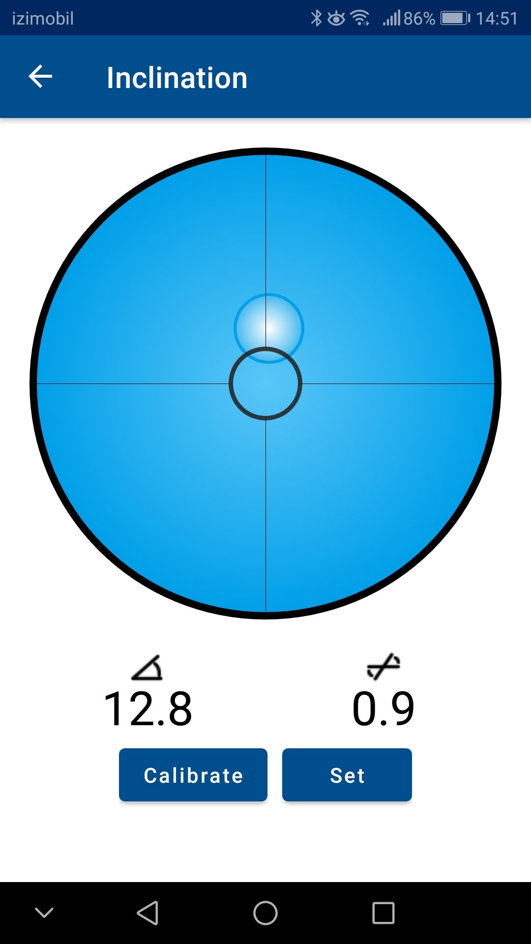 Določitev naklona: Zaženete libelo, mobilni telefon položite na streho oz. na površino,kjer bodo moduli in določite naklon.