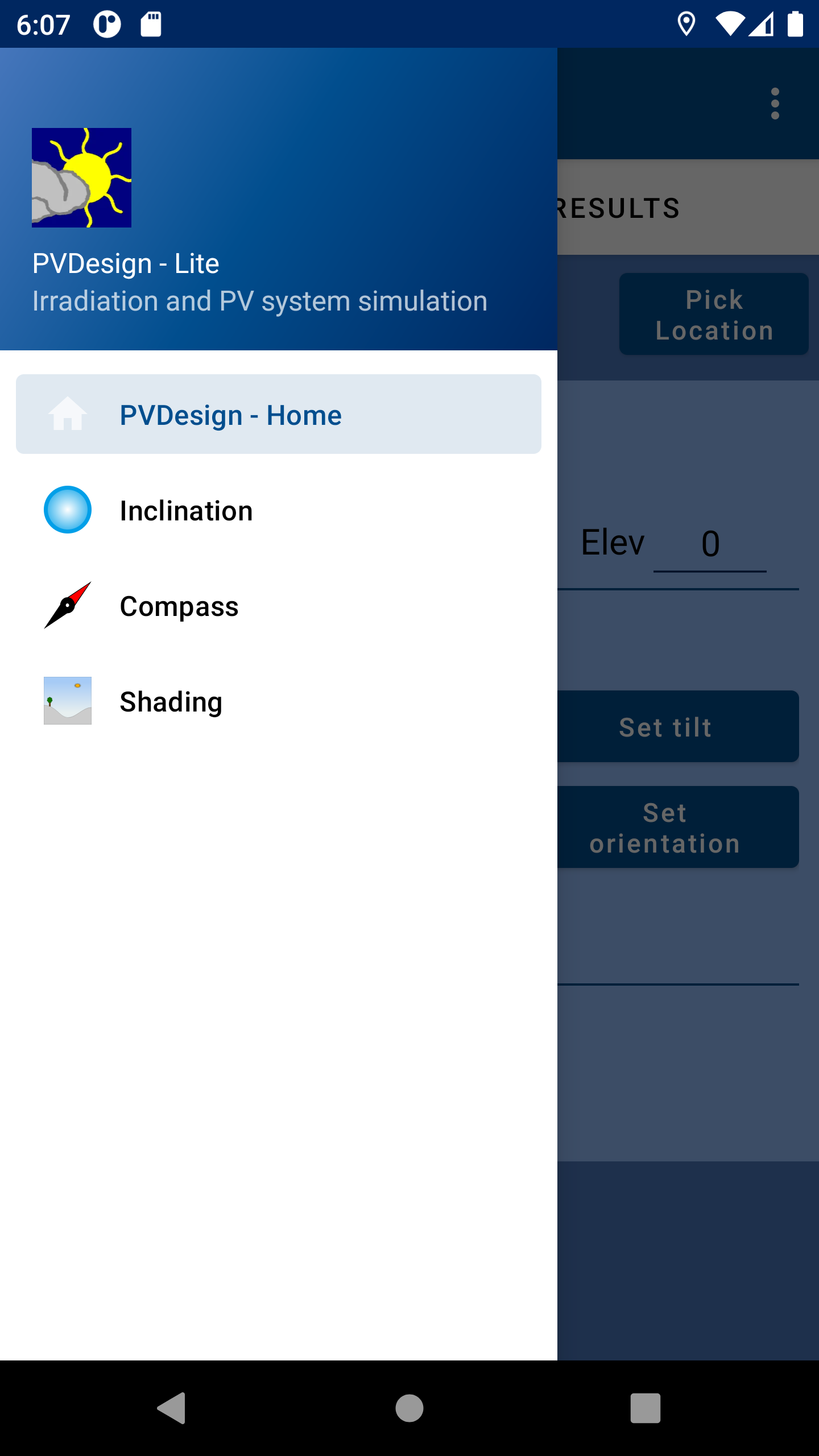 PVdesign je program za simulacjo sončnega obsevanja in donosa sončnih elektrarna za katerokoli lokacijo v Evropi. Temelji na podatkih o povprečnem mesečnem obsevanju in temperaturi iz podatkovne baze ERA5 (2010-2020) ali slovenskih podatkovnih baz (ARSO in Sončno obsevanje v Sloveniji 1990-2000). Simuliran horizont in podatki o nadmorski višini na izbrani lokaciji se uporablja podatkovna baza PVgis. Aplikacija uporablja čas UTC+1 (CET brez sprememb letnega časa). Prostorska ločljivost podatkovne baze ERA5 je približno 9 km, medtem ko slovenska podatkovna baza uporablja prostorsko ločljivost 1 km. Deluje v okolju Android. Za lažje delo so vklučeni pripomočki določitve orientacije in naklona modulov (stehe). Za izračun vplivov senčenja okolice je dodan pripomoček, za določitev horizonta s pomočjo kamere.