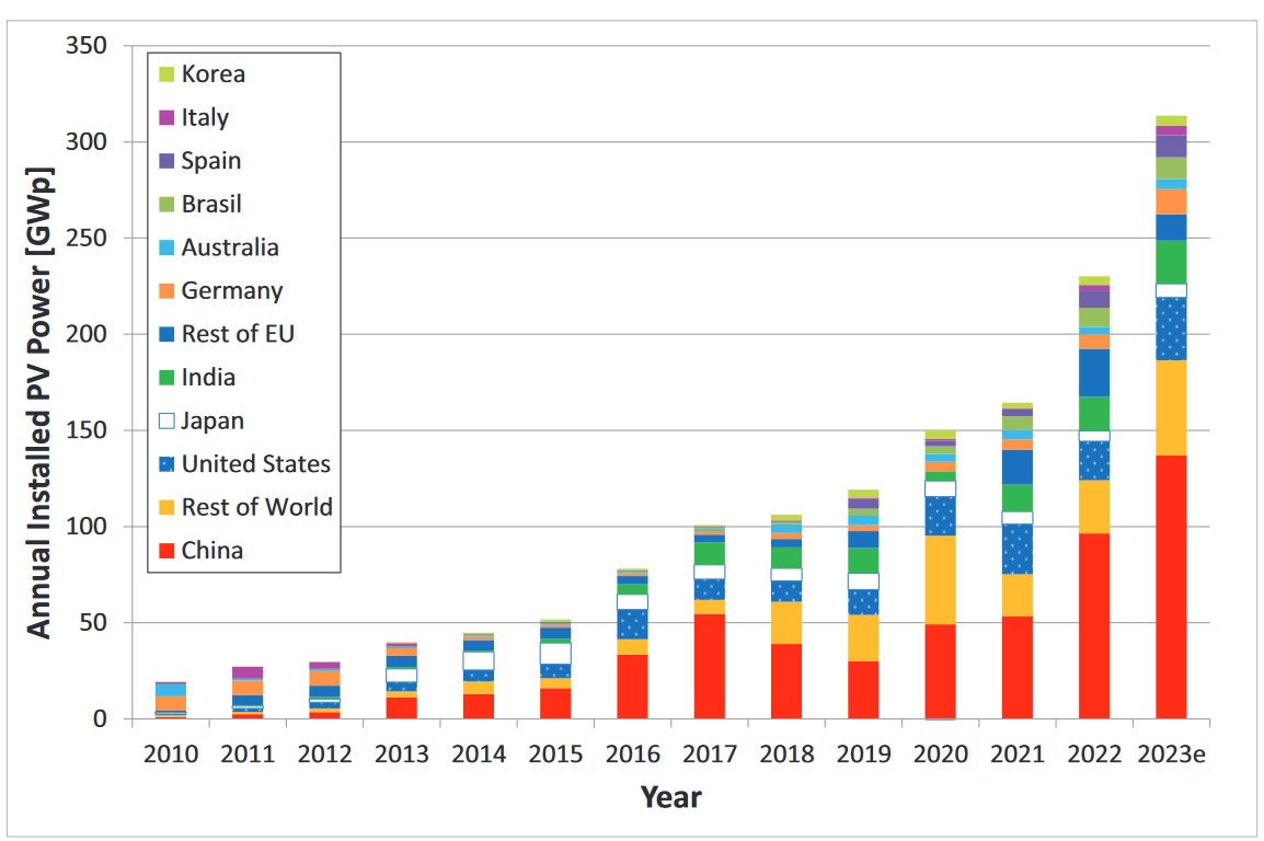 Hitra rast PV sistemov pa se pričakuje tudi v letu 2023. Po prvih ocenah bi naj samo Kitajska postavila 230 GW novih sončnih elektrarn. Globalno pa bi naj lani postavili od 350-420 GW novih sončnih elektrarn. Poleg Kitajske je lani 33 držav preseglo mejo letne rasti 1 GW. Skupna globalna moč sončnih elektrarn bi naj tako v letu 2023 presegla 1,5 TW.