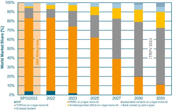 Med različnimi tehnologijami sončnih celic na fotonapetostnem trgu prevladuje monokristalen silicij. Pričakuje se, da so bo koncept BSF (Back Surface Field - vgrajeno polje na zadnji površini) koncept sončnih celic v letu 2023 ukinil. Kljub temu se bo uveljavljen koncept pasivacije zadnje strani še ohranil v ostalih konceptih sončnih celic (PERC/PRL/PERT/TopCon). PERC (Passivated Emitter and Rear Contact) koncept sončnih celic trenutno še predstavlja 80% trga, vendar se njegov delež vztrajno zmanjšuje na račun TopCon (Tunnel oxide passivated Conntact) koncepta sončnih celic.